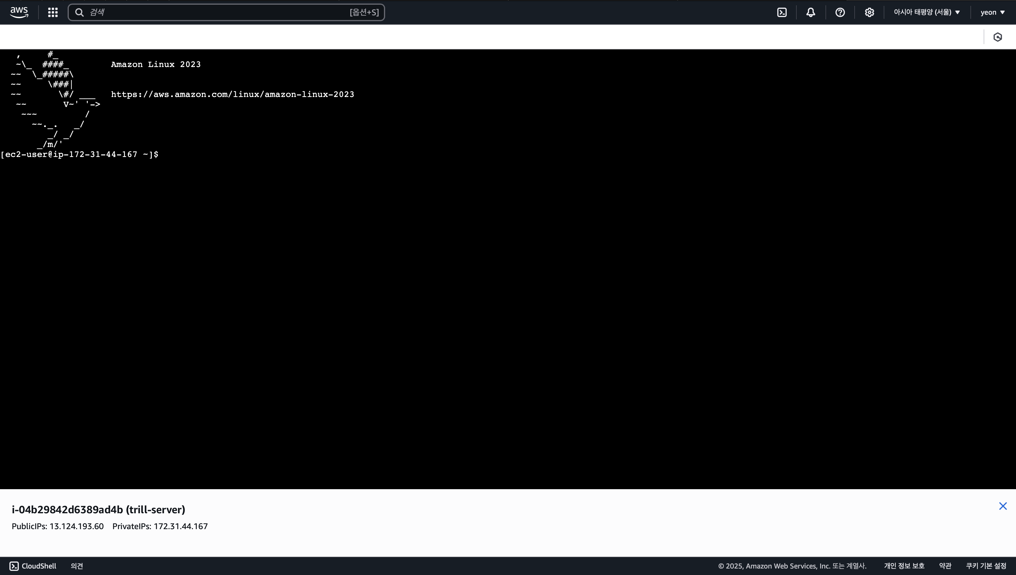 - ํ์ฌ ๋ก๊ทธ์ธ ๊ณ์ : ec2-user@ip-172-31-44-167