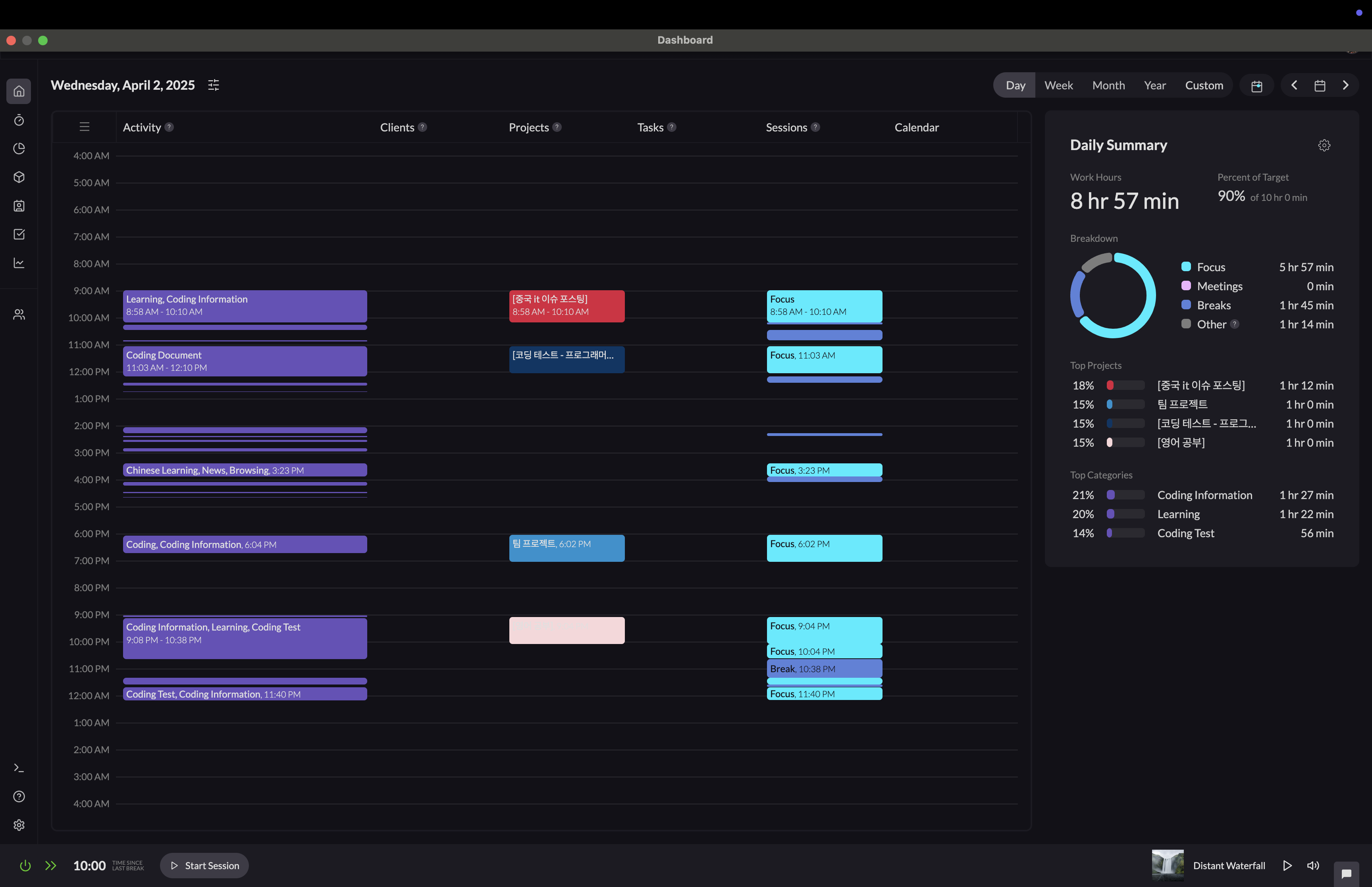 | 2025๋ 4์ 1์ผ ํ์์ผ - ์ง์ค ์๊ฐ : 10์๊ฐ 38๋ถ (0) | 2025.06.13 |