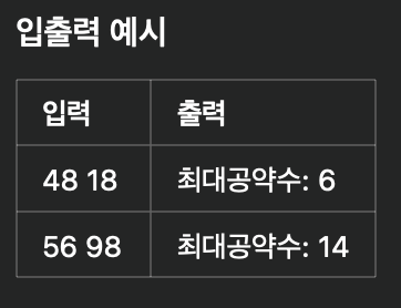 ๋ ์์ ์ต๋๊ณต์ฝ์๋ฅผ ๊ตฌํ๋ ค๋ฉด ์ฒ์๋ถํฐ ์ฝ์๋ฅผ ๋ค ์ฐพ์ ๋น๊ตํ๋ฉด ๋๋ฌด ์๊ฐ์ด ์ค๋ ๊ฑธ๋ฆฐ๋ค.
